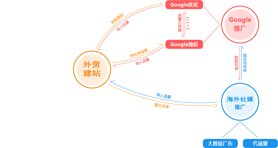 温州外贸推广公司为您提供全面的“整合”方案,为您的企业提供全生命周期的精细化服务和咨询。为此,我们搭建了从广告投放到SEO优化,从内容运营到网站开发,从品牌策划到电商运营的近100人的团队,组成了一家集全球渠道资源、人才资源、技术资源为一体的数字营销机构,为您一站式解决出海难题,实现品牌全球推广!